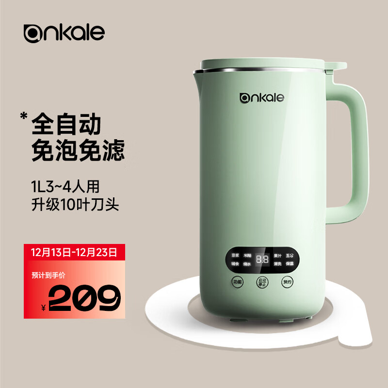 ankale破壁机 豆浆机 迷你小型家用免洗 五谷杂粮全自动免煮 破壁豆浆机 清新绿/1L价格:249.00元!