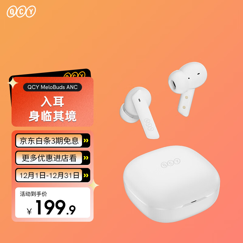QCY MeloBuds ANC真无线蓝牙耳机主动降噪入耳游戏低延迟通话降噪运动降噪小方糖适用全部手机 白色价格:199.90元!
