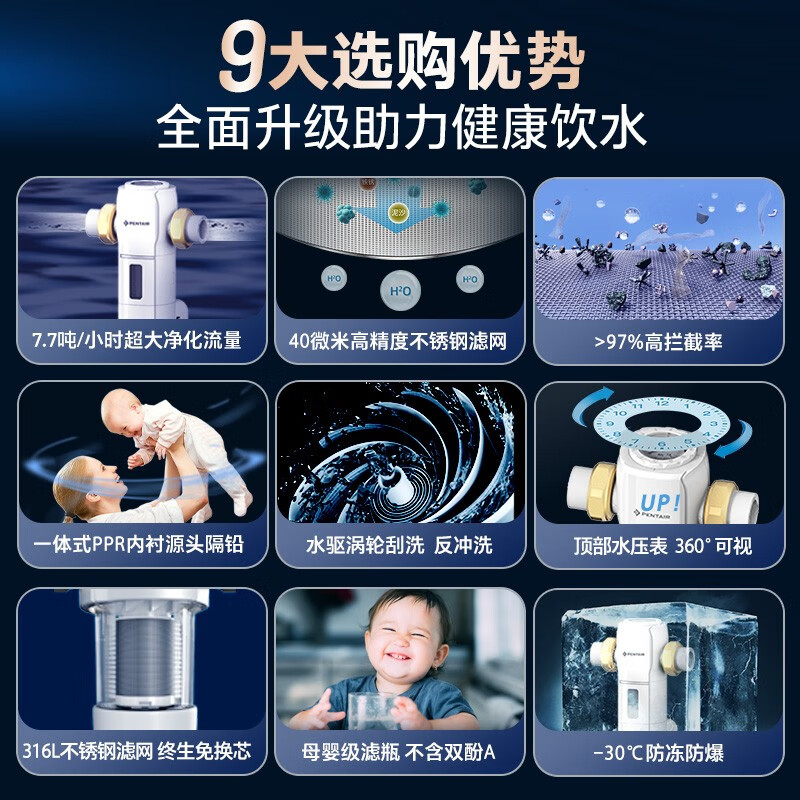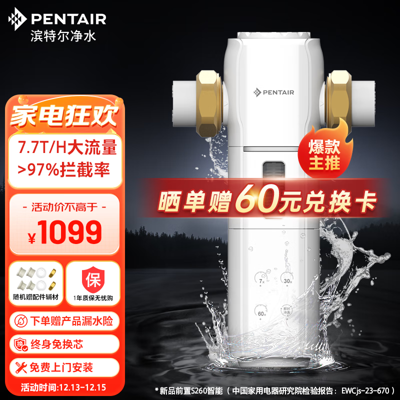 滨特尔(pentair) 前置过滤器大通量家用全屋自来水管道过滤器虹吸正反冲洗家用净水器 【7.7 T/H大流量】S260智能前置过滤器价格:1099.00元!