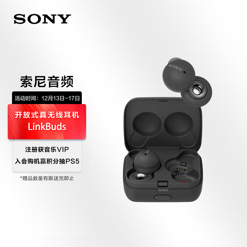 索尼(SONY)linkBuds 真无线 开放式 蓝牙耳机 IPX4防水 环形振膜 高清通话 灰色价格:699.00元!
