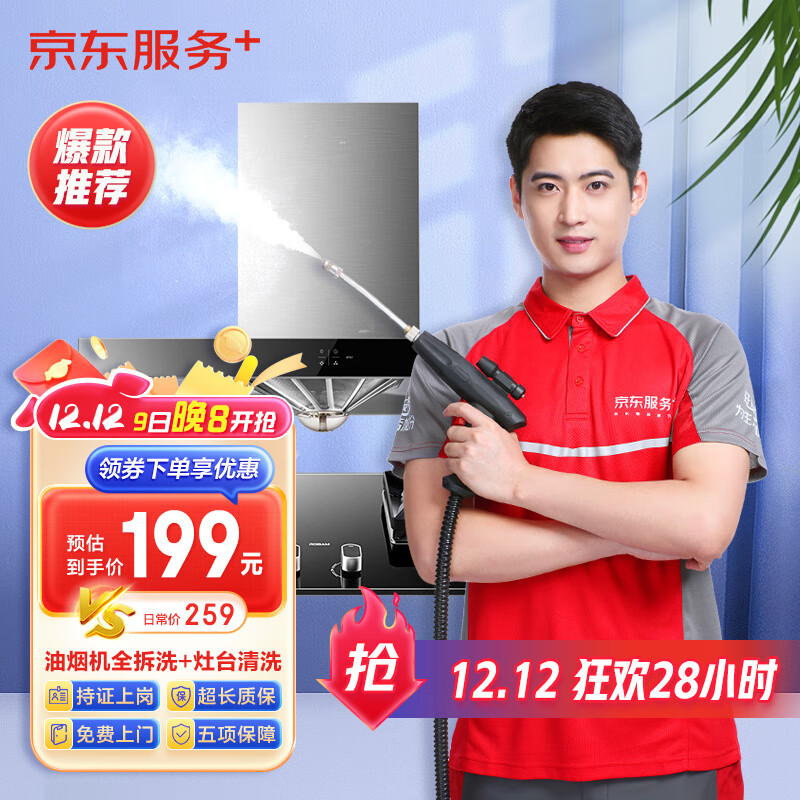 油烟机全拆洗+灶台清洗 京东家电清洗 上门服务 家政保洁价格:249.00元!