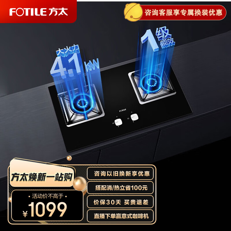 方太燃气灶(液化气)家用嵌入式双灶头灶具 4.1kW*猛火灶台 一级能效 JZY-HT8BE.S价格:1099.00元!