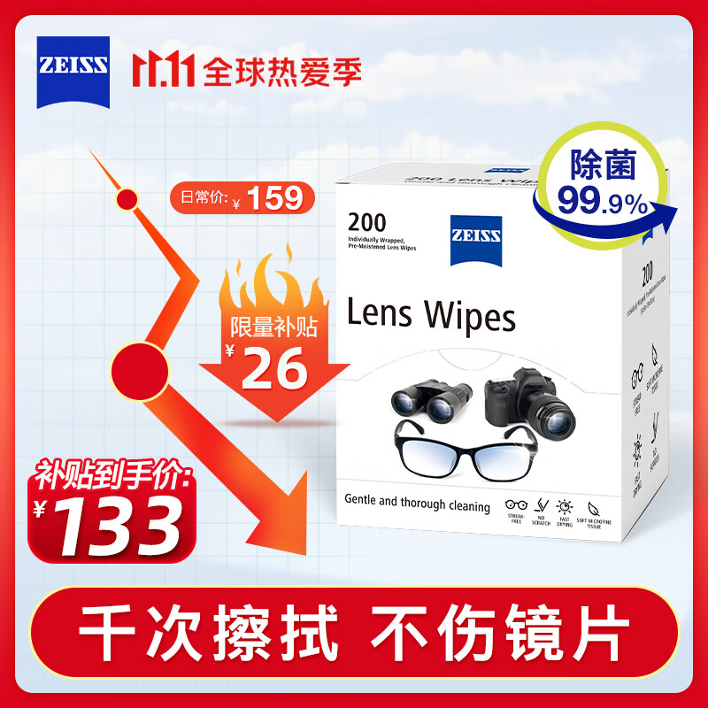 zeiss蔡司 专业光学拭镜纸 擦镜纸 眼镜 相机镜头 镜片清洁湿巾 清洁湿纸巾 200片装价格:133.00元!