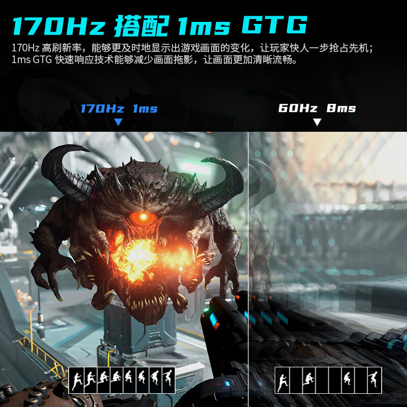 2、外形外观:感觉很厚实,那种结实的感觉尺寸大小:24寸,大小刚刚好游戏效果:165刷新率,游戏体验不错显色效果:显色效果很好