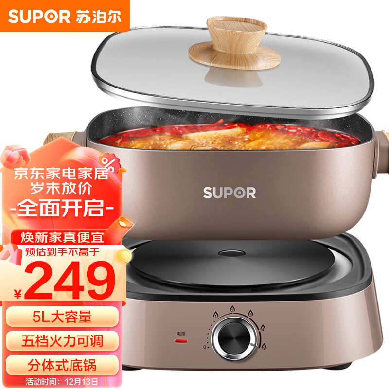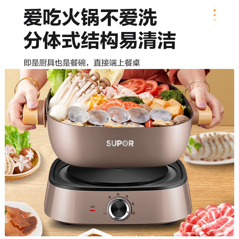 苏泊尔(SUPOR)电火锅 电煮锅电炒锅火锅专用锅涮肉分体式火锅锅家用多功能电锅电热锅5L多用途锅H2727FK622价格:249.00元!