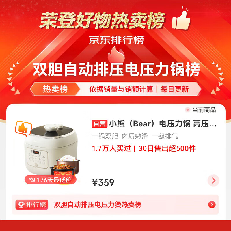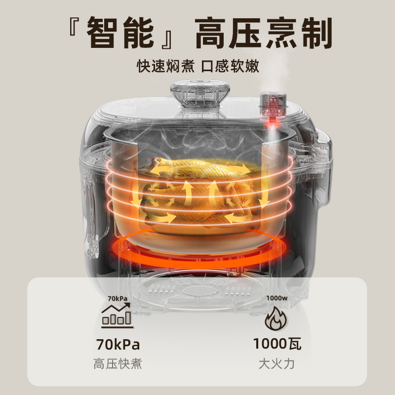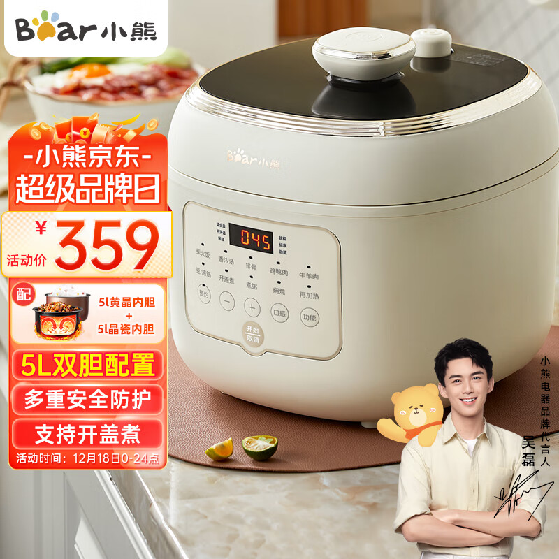 小熊(Bear)电锅 高压锅5L家用多功能高压快煮开盖收汁一键排气智能电饭锅锅 YLB-A50P1白色价格:359.00元!
