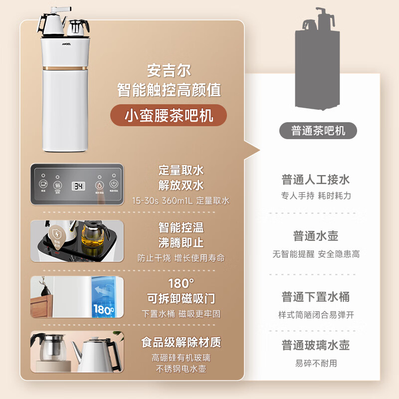 安吉尔(Angel)茶吧机家用办公高端智能触控高颜值小蛮腰11档温控吧台机饮水机下置式CB2717LK-J a价格:799.00元!