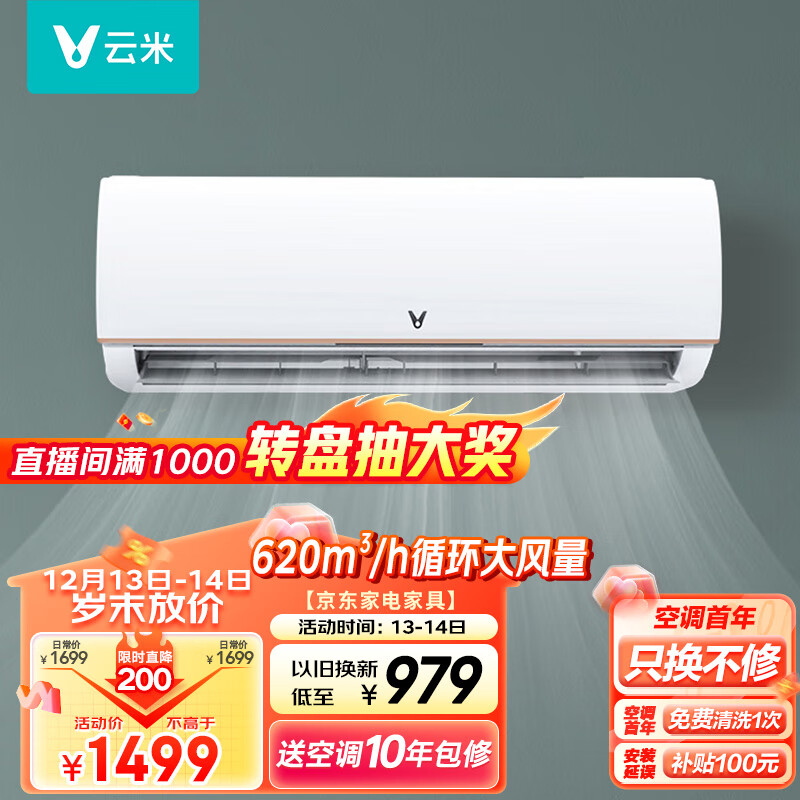 云米(VIOMI)1匹空调 新能效定频 单冷空调壁挂式 iCool 2T 智能除湿 快速制冷 以旧换新 KF-26GW/Y4PCB-D5价格:1499.00元!