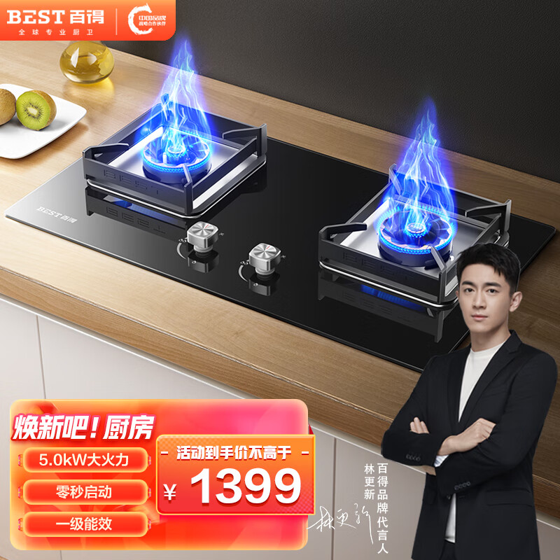 百得(BEST)华帝股份 JZY-JD65B 5.0kW大火力 猛火灶 零秒启动 钢化玻璃 台式灶 嵌入式灶 台嵌两用(液化气)价格:1399.00元!