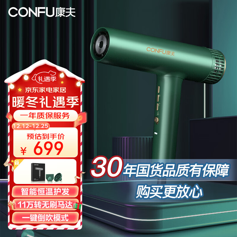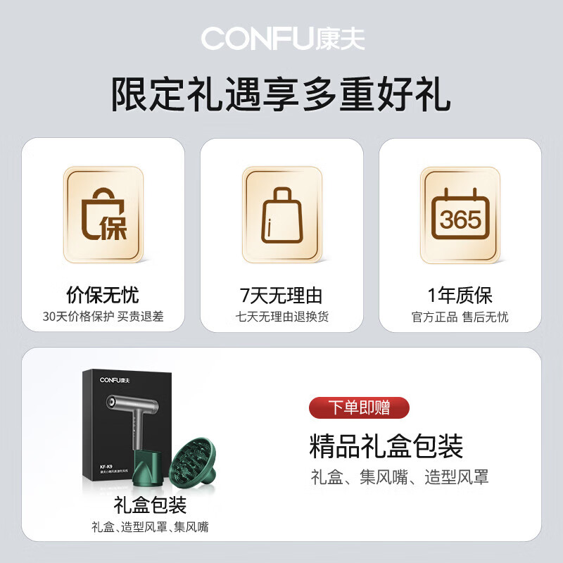 康夫(CONFU)高速电吹风机家用生日圣诞礼物大功率低噪音大风力负离子速干吹风筒护发廊 KF-K9 玛瑙绿价格:699.00元!
