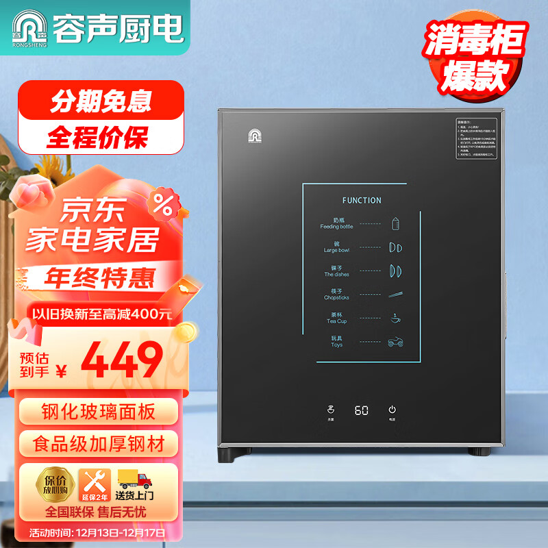 容声(RONGSHENG)消毒柜家用 立式小型消毒碗柜 二消毒 紫外线热风循环 50L保洁柜50-RQ230价格:445.30元!