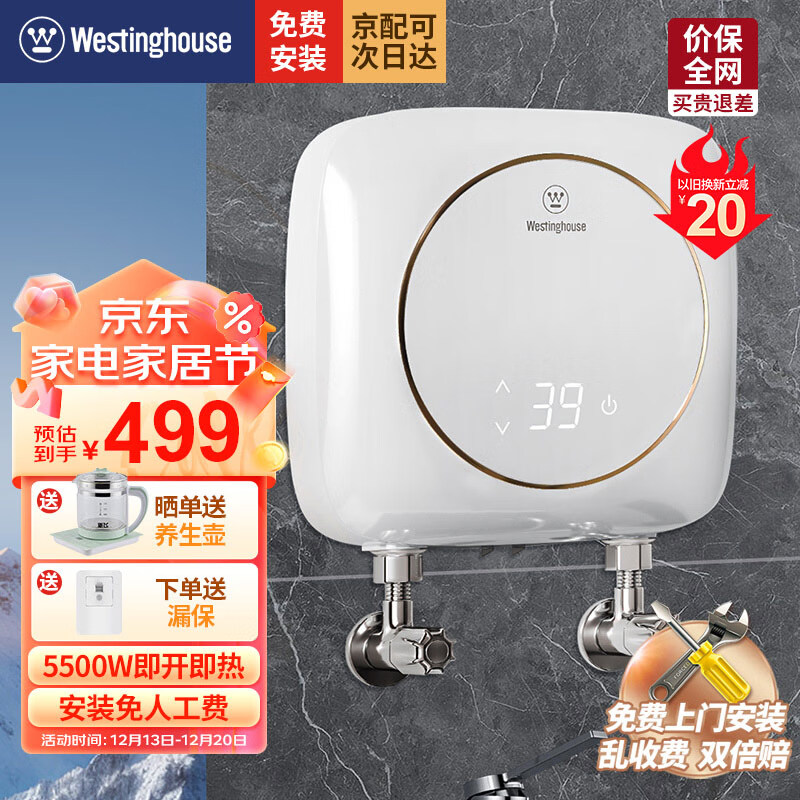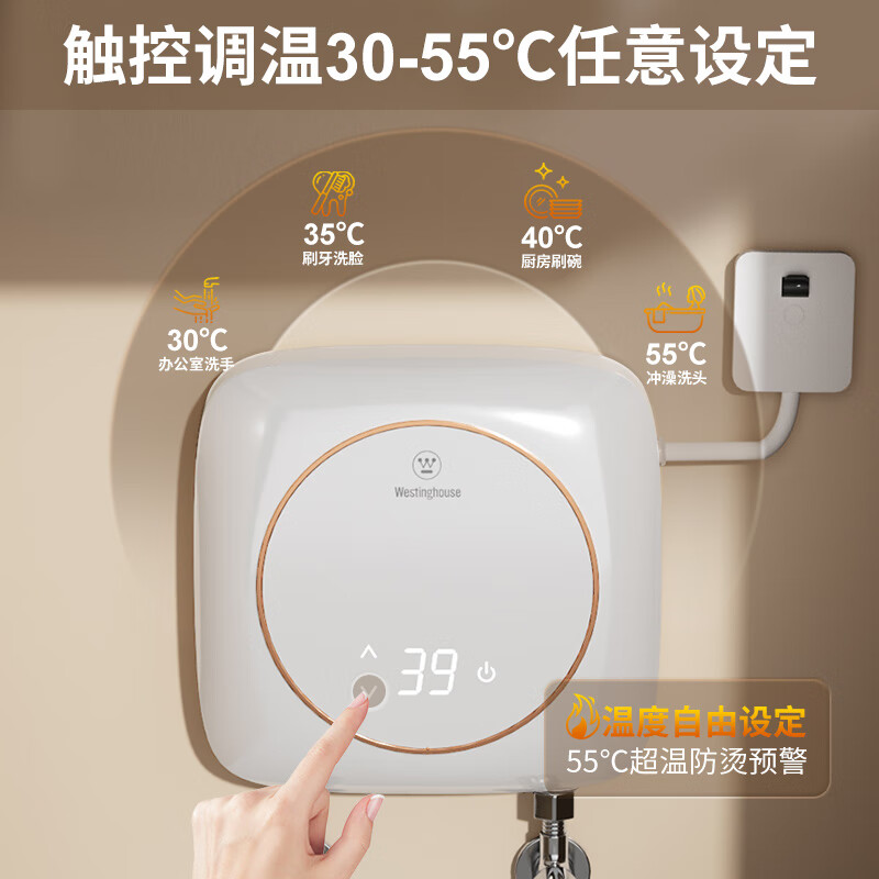 西屋(Westinghouse)即热式厨宝电热水器 5500W三档变频不限水量家用迷你热水宝 速热免储水式过水热暖水宝DSFH55311价格:399.00元!