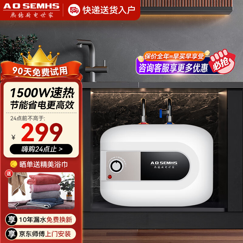 AOSEMHS小厨宝储水式厨房电热水器小型家用热水宝DSZF-A1-8上出水价格:286.00元!