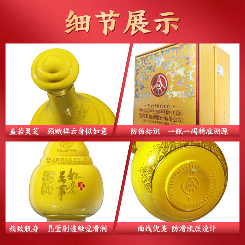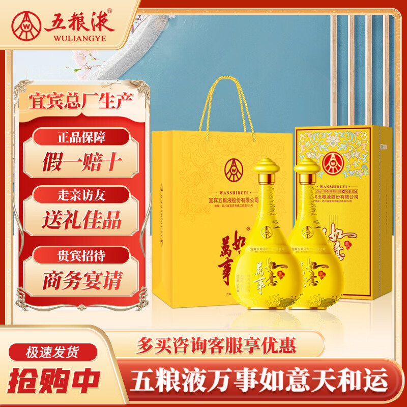 五粮液股份 送礼佳品 万事如意天和运 固态法纯粮食白酒52度500ml*2瓶装价格:1149.00元!