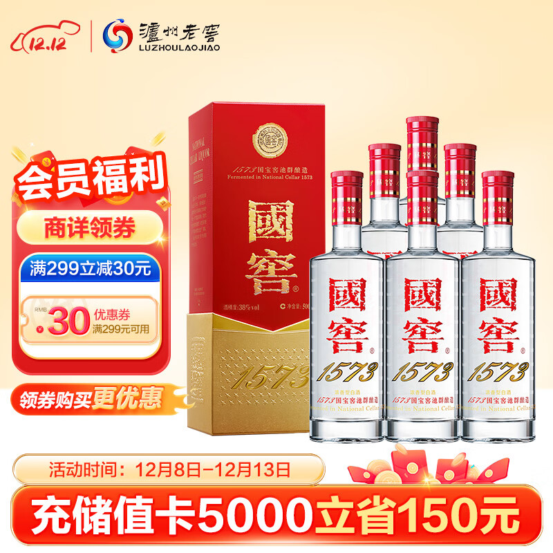 泸州老窖 国窖1573 浓香型白酒 38度 500ml*6瓶 整箱装(新老包装随机发货)价格:4798.00元!