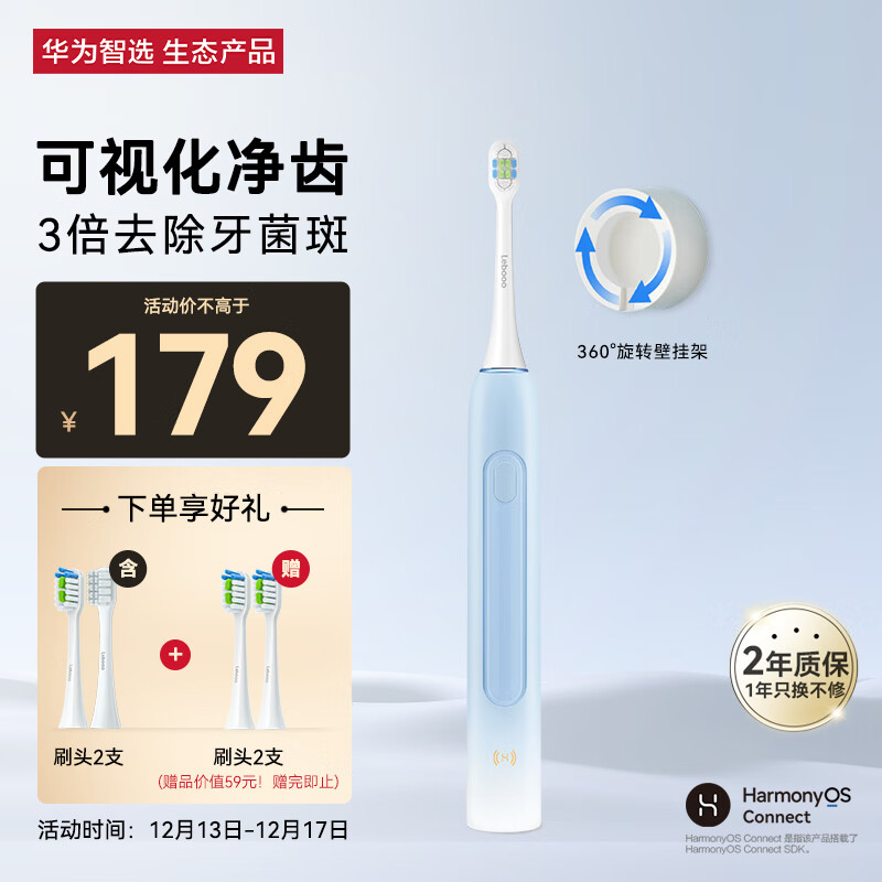华为智选力博得电动牙刷 智能声波牙刷3 牙医推荐清洁亮白 180天长续航 优漾3 冰晶蓝价格:179.00元!
