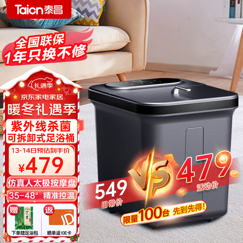 泰昌(Taicn)足浴盆智能杀菌泡脚桶洗脚盆洗脚桶足浴桶龙爪按摩送父母朋友妈妈生日礼物TC-12L6L4(烟雨灰)价格:529.00元!