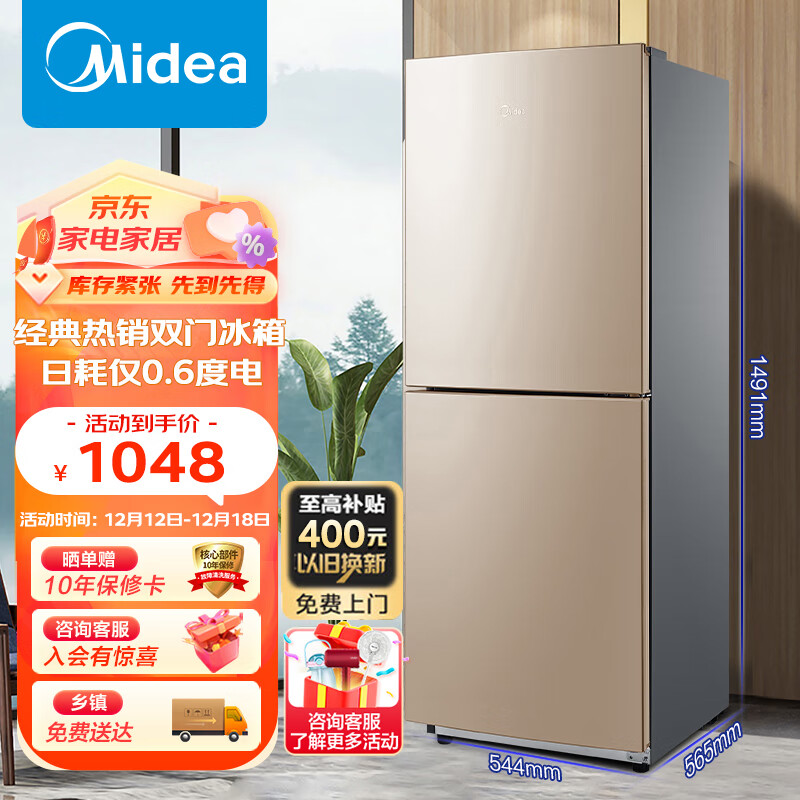 美的(Midea)172升双门冰箱 双门双温深冷速冻低温补偿家用超薄电冰箱BCD-172CM(E)芙蓉金[热销]价格:1048.00元!