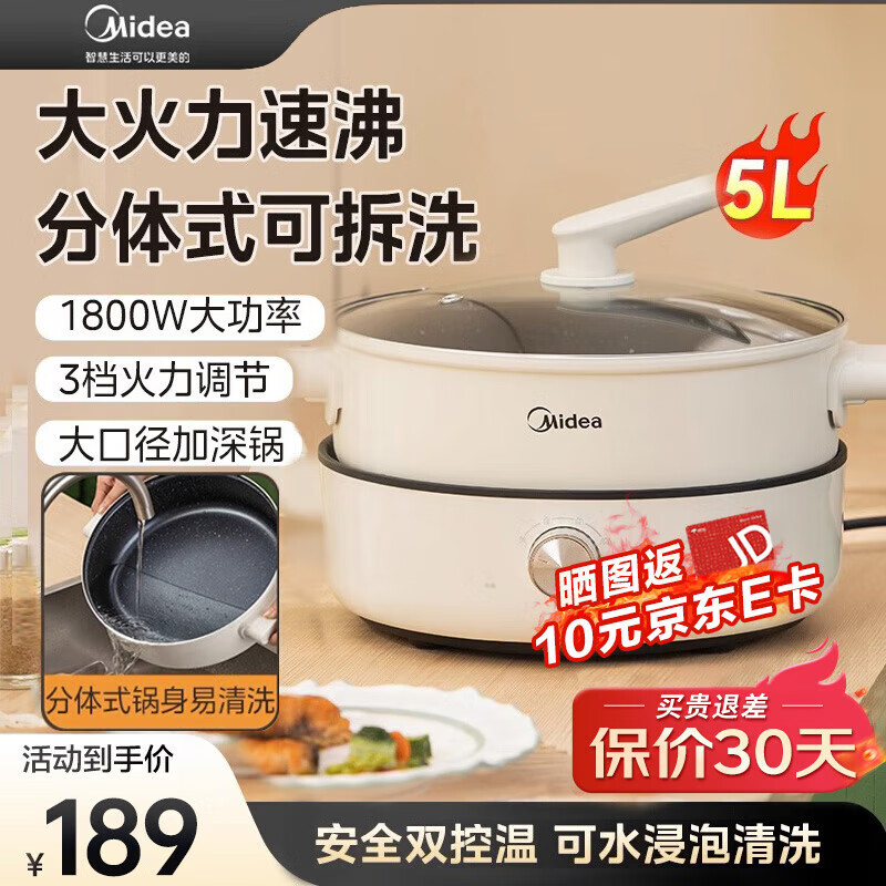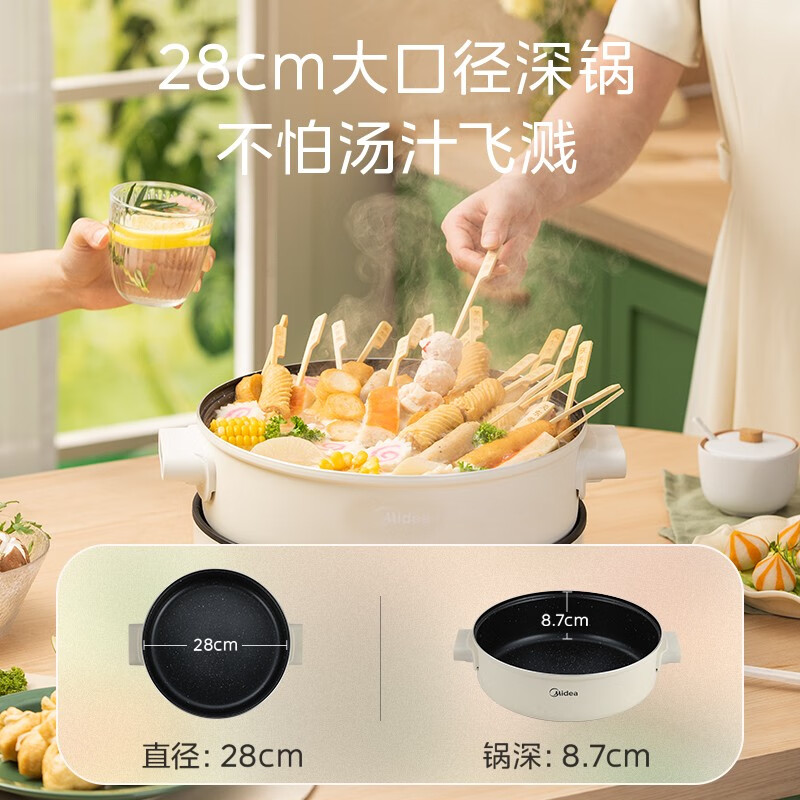 美的电火锅 5L家用火锅专用锅 多功能电煮锅电炒锅 一机多用不粘锅 分体可拆洗 【5L大容量丨9分钟速沸】MC-HGE28T71价格:209.00元!
