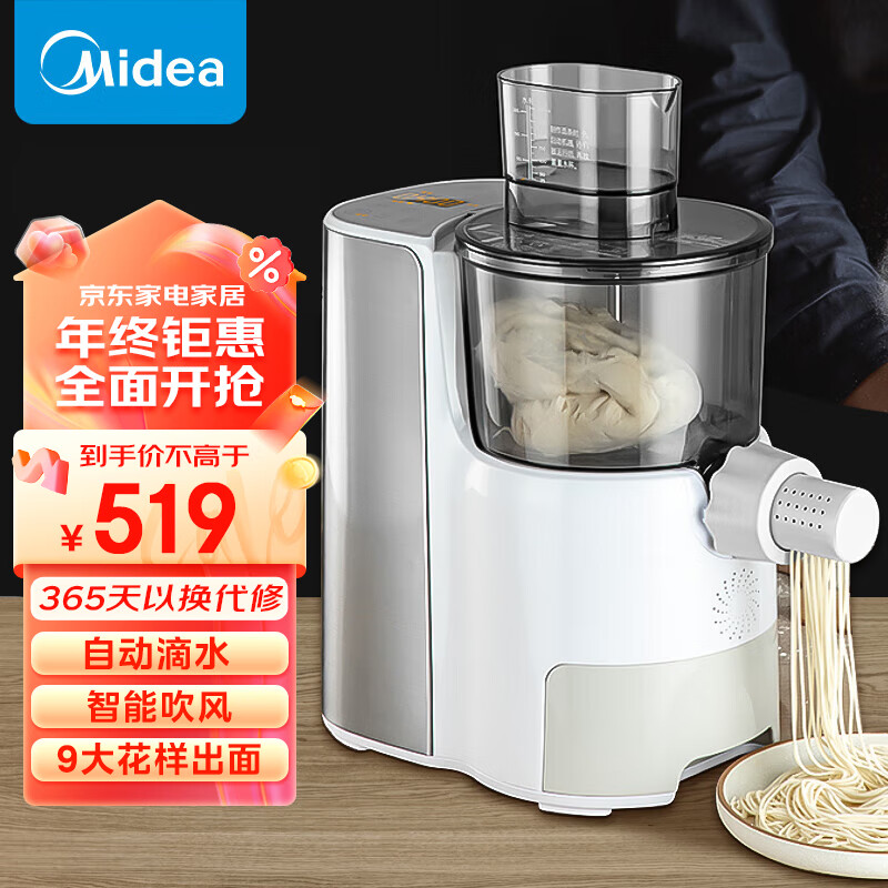 美的(Midea)面条机 家用全自动智能多功能压面机和面机 多模头可拆卸易清洗 电动饺子皮机MJ-KM18X5-101价格:519.00元!