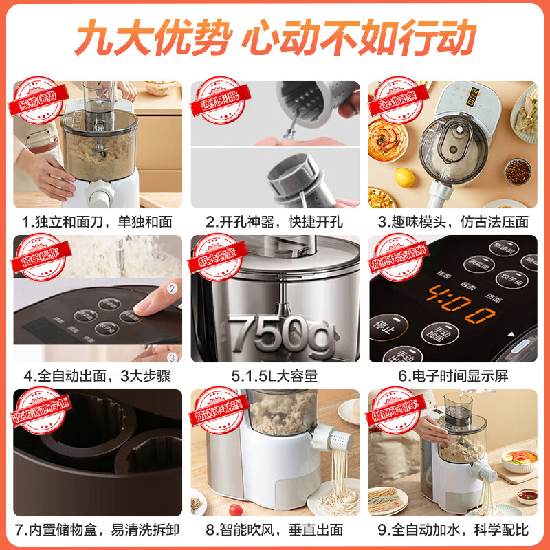2、关注了半年,终于等到了优惠较大的时候拿下,抱着试一试的态度,没想到买到了宝藏产品,真的太方便了,二十分钟不到五人份的面就做好了,面条还挺劲道,赞赞赞