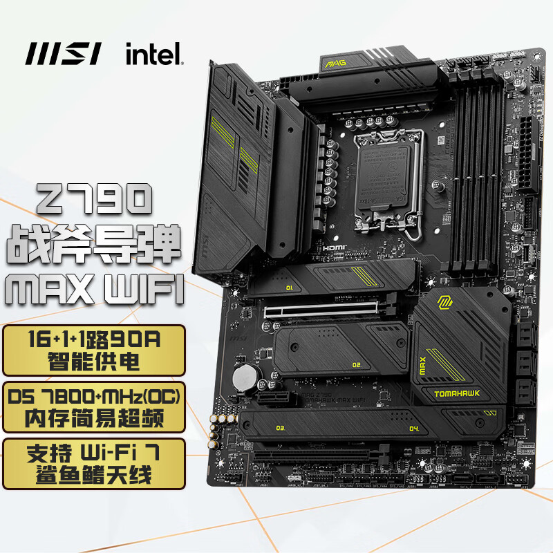 微星(MSI)MAG Z790 TOMAHAWK MAX WIFI战斧导弹 DDR5 WIFI7 主板14700K/14700KF(Intel Z790/LGA 1700)价格:2499.00元!
