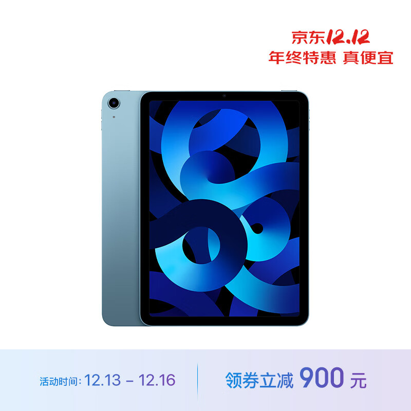 Apple【教育优惠】 iPad Air 10.9英寸平板电脑 2022款(256G WLAN版/M1/学习办公娱乐游戏/MM9N3CH/A)蓝色价格:5599.00元!