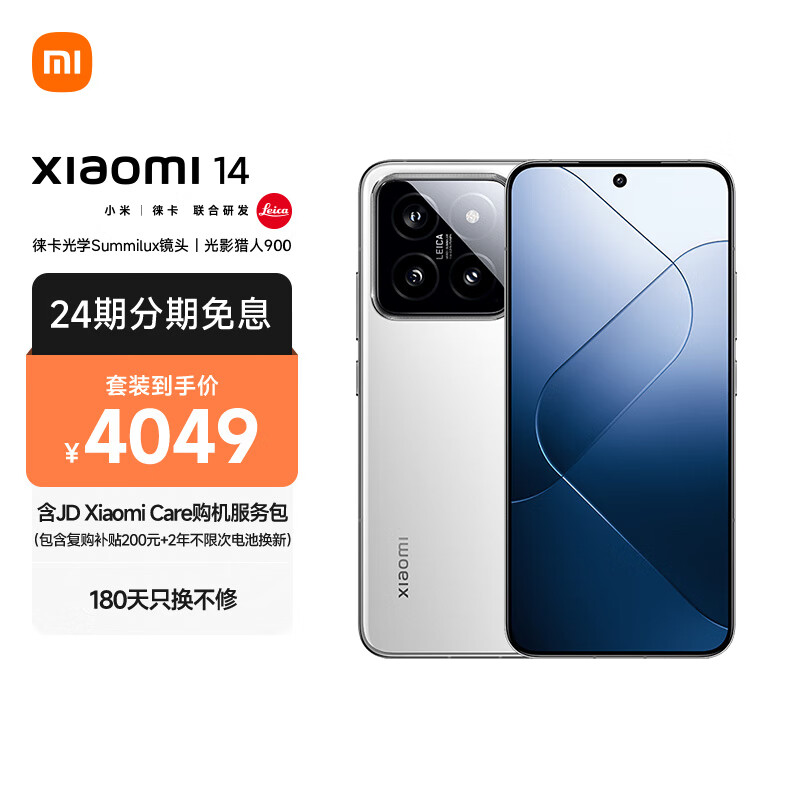 小米14 徕卡光学镜头 光影猎人900 徕卡75mm浮动长焦 骁龙8Gen3 8+256 白色 小米手机 [MI Care套装版]价格:4049.00元!