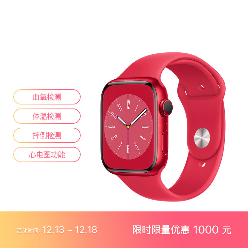 Apple Watch Series 8 智能手表GPS+蜂窝款45毫米红色铝金属表壳红色运动型表带eSIM手表 S8 MNKC3CH/A价格:2999.00元!