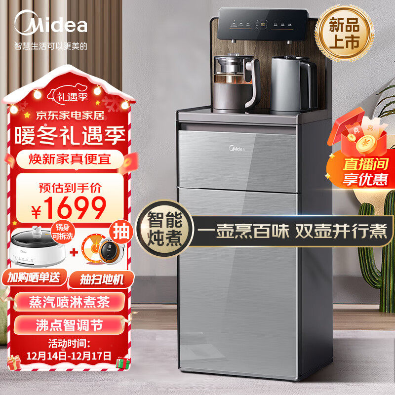 美的(Midea)智能茶吧机立式饮水机家用高端背板下置式桶装水多功能喷淋煮茶带炖煮模式温热款 YR1629S-X价格:1699.00元!