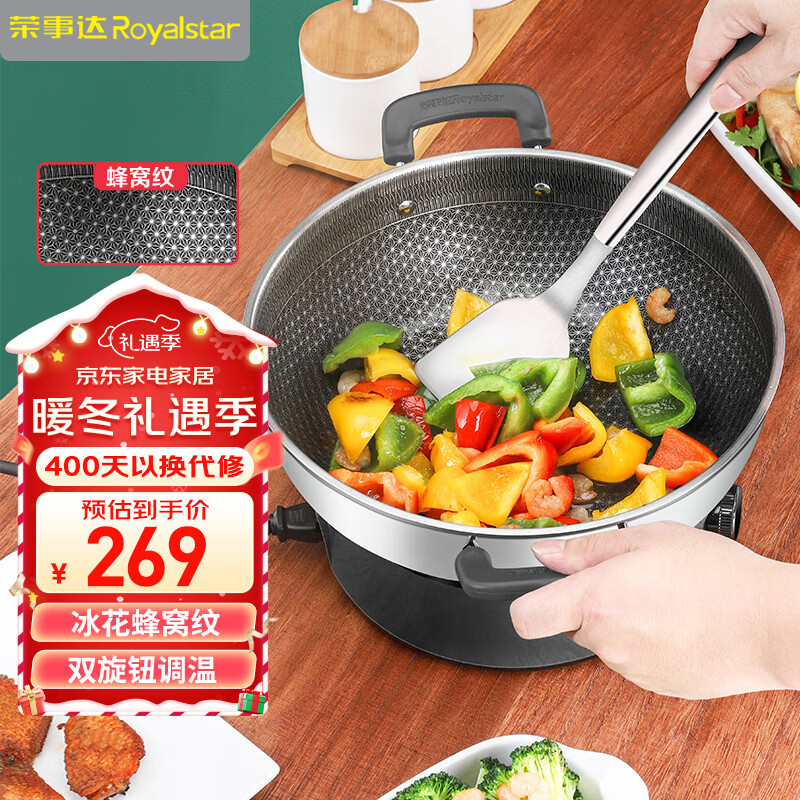 荣事达(Royalstar)电炒锅多功能家用电炒菜炒锅一体式不粘锅大功率蒸煮锅电热锅电火锅RDG-32CG无笼价格:269.00元!