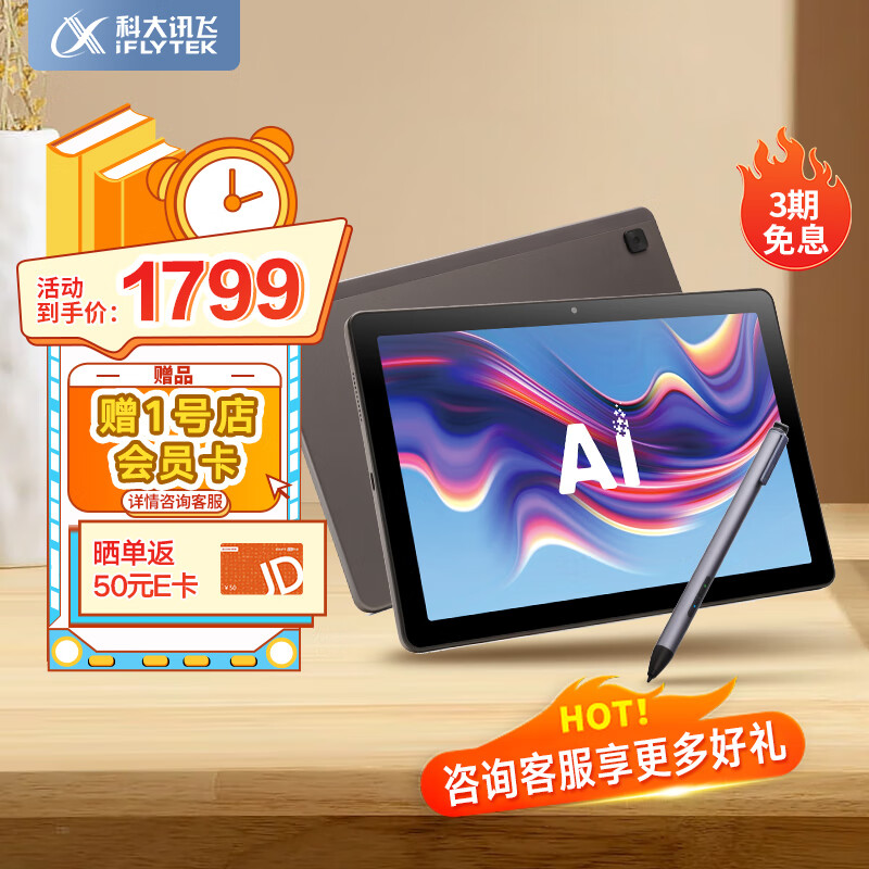 科大讯飞AI学习机C10 10.1英寸 护眼平板电脑 学生平板 英语学习机平板 家教机 小学到高中 4+128GB价格:1999.00元!