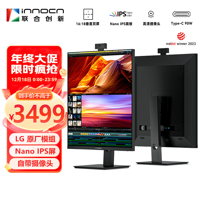 联合创新(Innocn)27.6英寸Nano IPS 16:18立面屏 旋转升降 摄像头+麦克风 视频会议 直播 设计师显示器28C1Q价格:4299.00元!