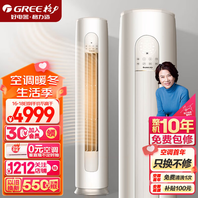 格力(GREE)空调 京东小家智能生态 2匹云逸-Ⅱ 客厅空调立式空调柜机KFR-50LW/NhGm3BAj(珊瑚玉色)价格:4999.00元!