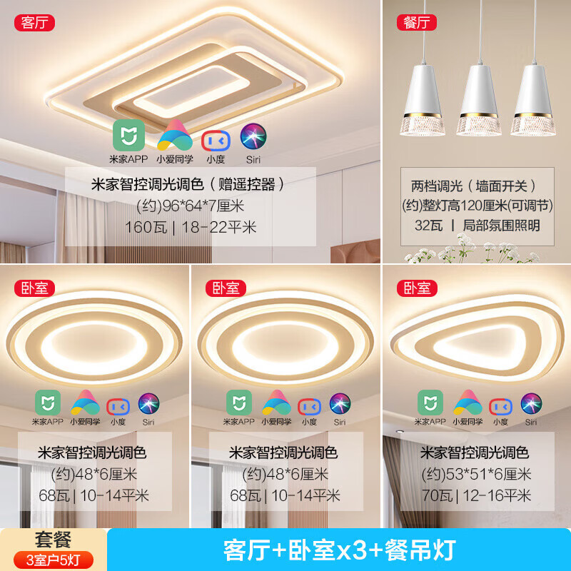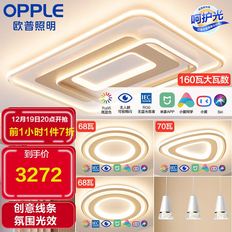 欧普(OPPLE)智能LED客厅卧室书房吸顶灯套餐创意线条高颜值现代高级6价格:4673.00元!