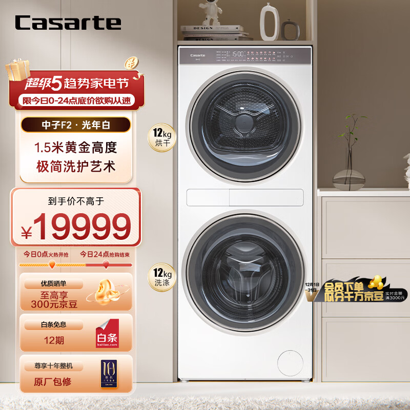 卡萨帝(Casarte)光年中子F2和美洗干集成机 12+12公斤 3D透视烘干双擎热泵 1.5米平嵌养护湿洗 C9 YF12BL12W2EU1价格:19999.00元!
