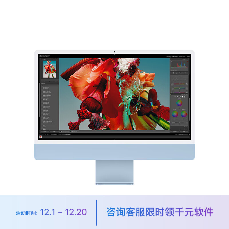 Apple iMac【教育优惠】 24英寸 蓝色 4.5K屏 8核M3芯片(10核图形) 8G 256G SSD 一体式电脑主机MQRQ3CH/A价格:11699.00元!