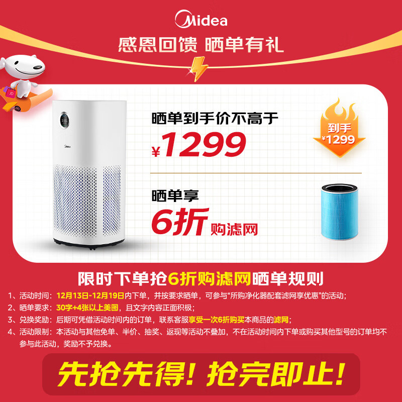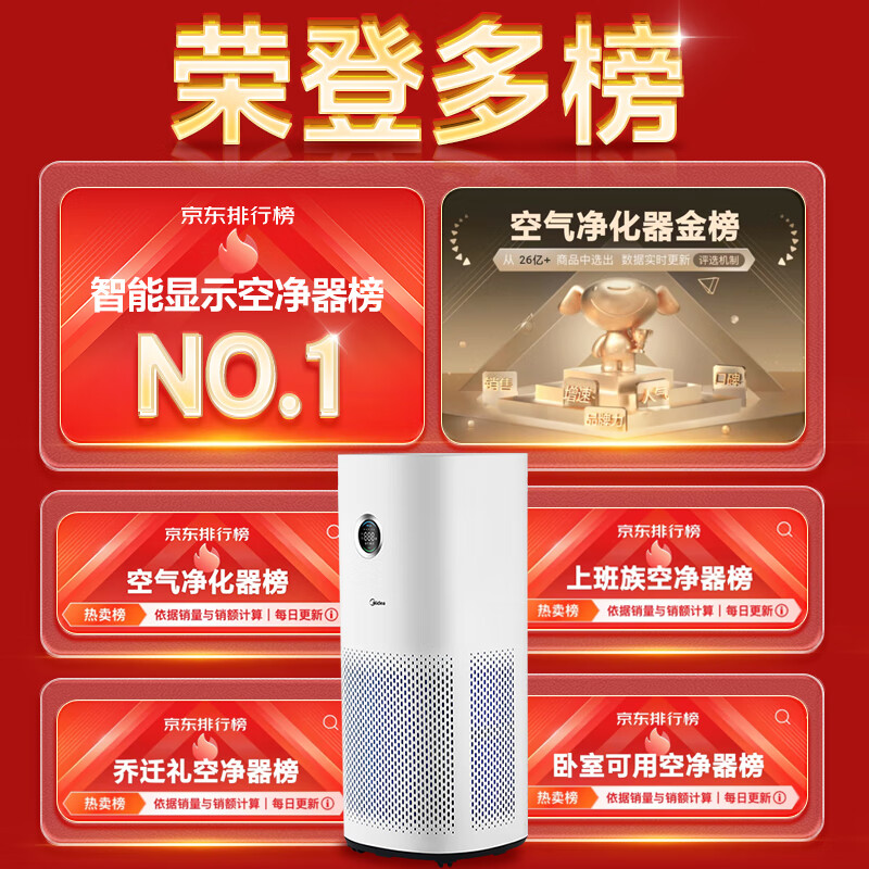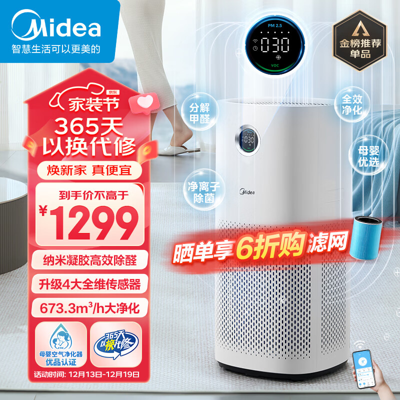 美的(Midea)【星澈空气护理机】空气净化器除甲醛空气净化器除烟味异味除菌六重净化家用新风机KJ600G-RX600价格:1699.00元!