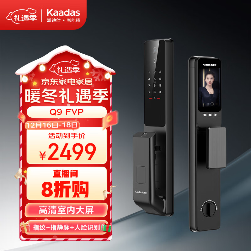 凯迪仕Q9FVP指静脉智能门锁 指纹锁 3D人脸室内屏电子密码锁 星空灰价格:2499.00元!