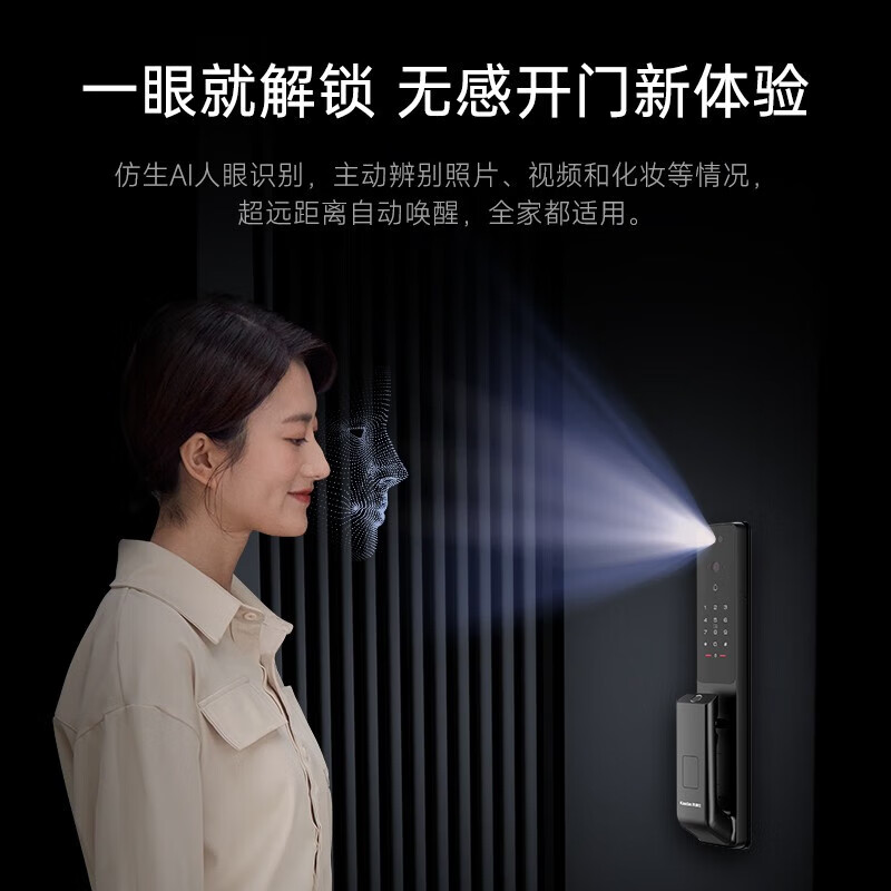 3、门锁相当的不错,除了普通的钥匙、密码、卡片开锁以外,还可以指纹识别、人像识别,特别是人脸识别准确度很高,不愧是用了商汤的识别技术,设置也简单,扫描门锁二维码可以认证,然后通过app添加。