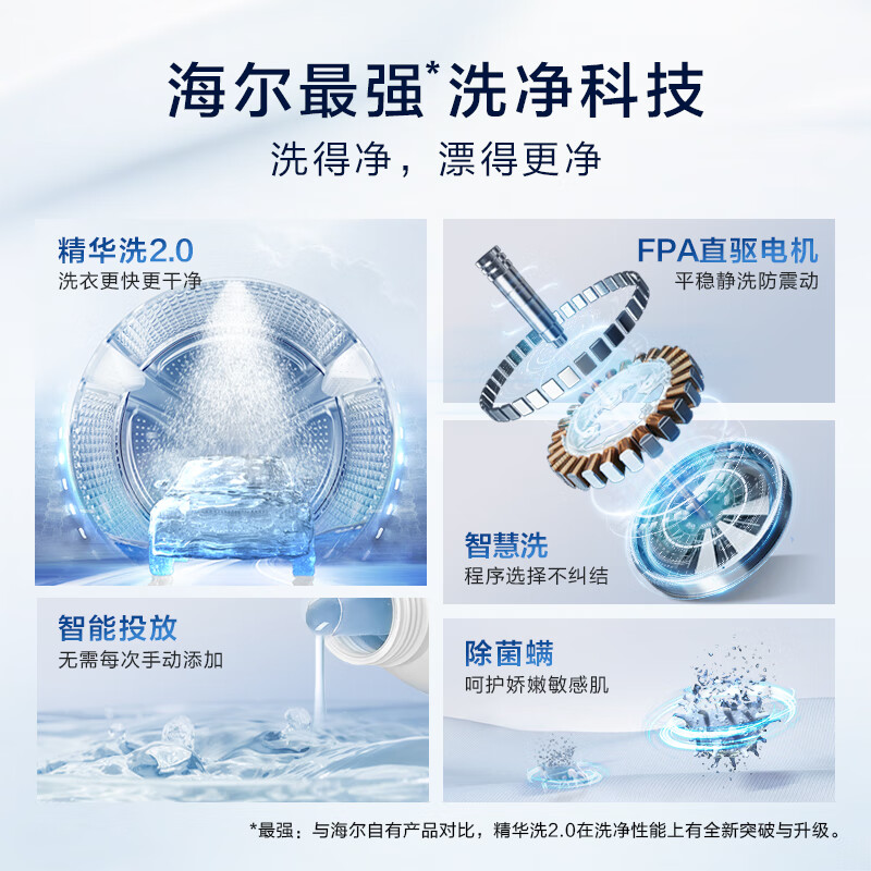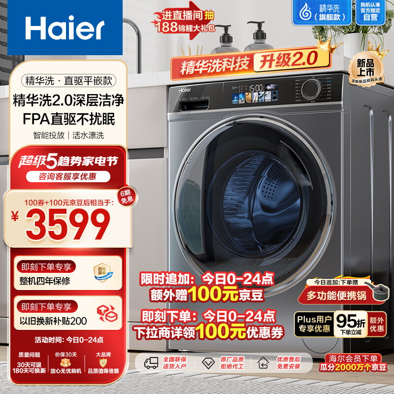 海尔(Haier)滚筒洗衣机全自动家用 直驱精华洗82 10公斤大容量 直驱防震动 纯平嵌入 智能投放 EG100MATE82S价格:3799.00元!