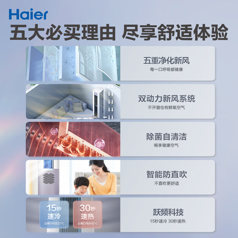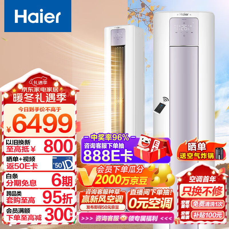 海尔(Haier)新一级能效 3匹 雷神者II 变频冷暖 客厅空调立式柜机 新风空调 KFR-72LW/28LBC81U1 以旧换新价格:6499.00元!