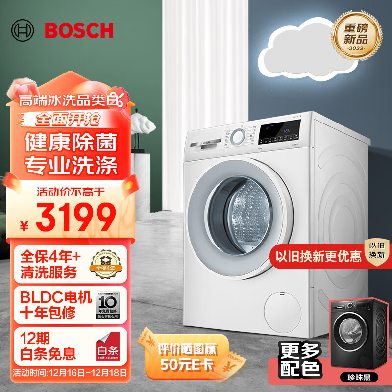 博世(BOSCH)【云朵白·极速版】家用滚筒洗衣机全自动10公斤大容量变频 除菌除螨 快洗 羊毛洗护 WGA152000W价格:3499.00元!