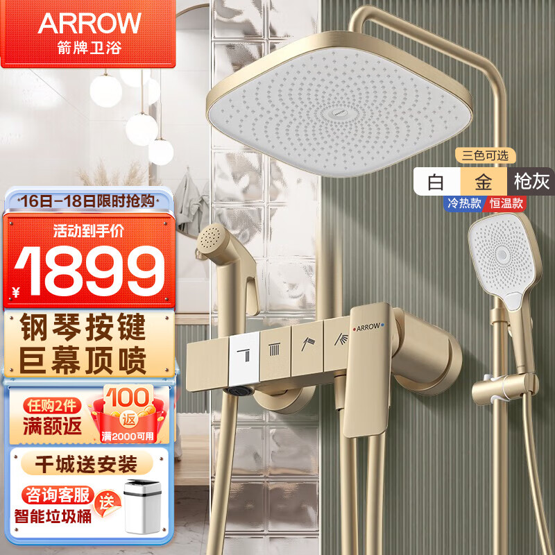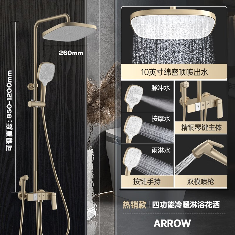 箭牌(ARROW) 淋浴花洒套装增压花洒全套莲蓬头淋雨器套装浴室花洒按键花洒 【拉丝金】按键丨冷热款价格:2249.00元!