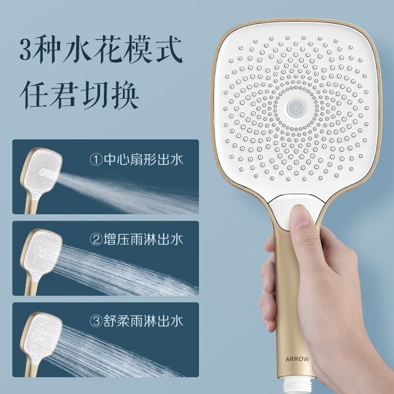 2、这款箭牌花洒颜值高,功能丰富,多种出水方式,精致的拉丝金,非常适合我的金色轻奢卫生间风格,非常满意!