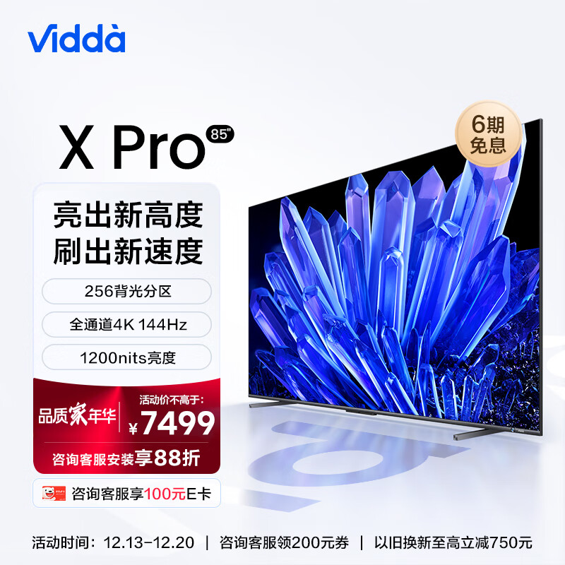 Vidda X85 Pro 海信 85英寸 144Hz游戏电视 256分区 屏 4G+64G 智能液晶巨幕以旧换新85V3K-PRO价格:7999.00元!
