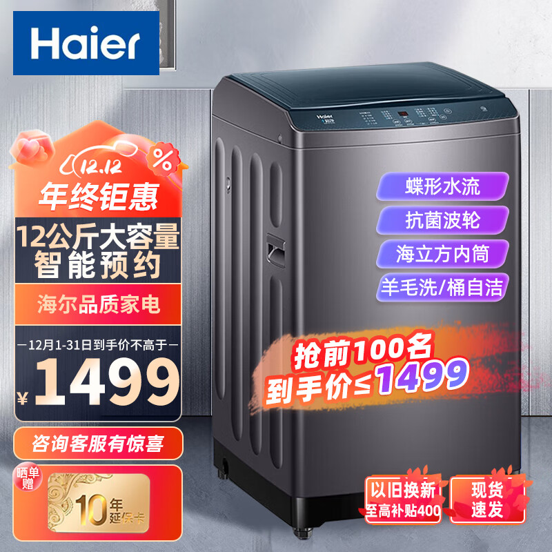 海尔(Haier)12公斤波轮洗衣机全自动家用大容量智能预约自编程漂甩合一桶自洁羊毛超净洗脱一体桶自洁价格:1440.00元!
