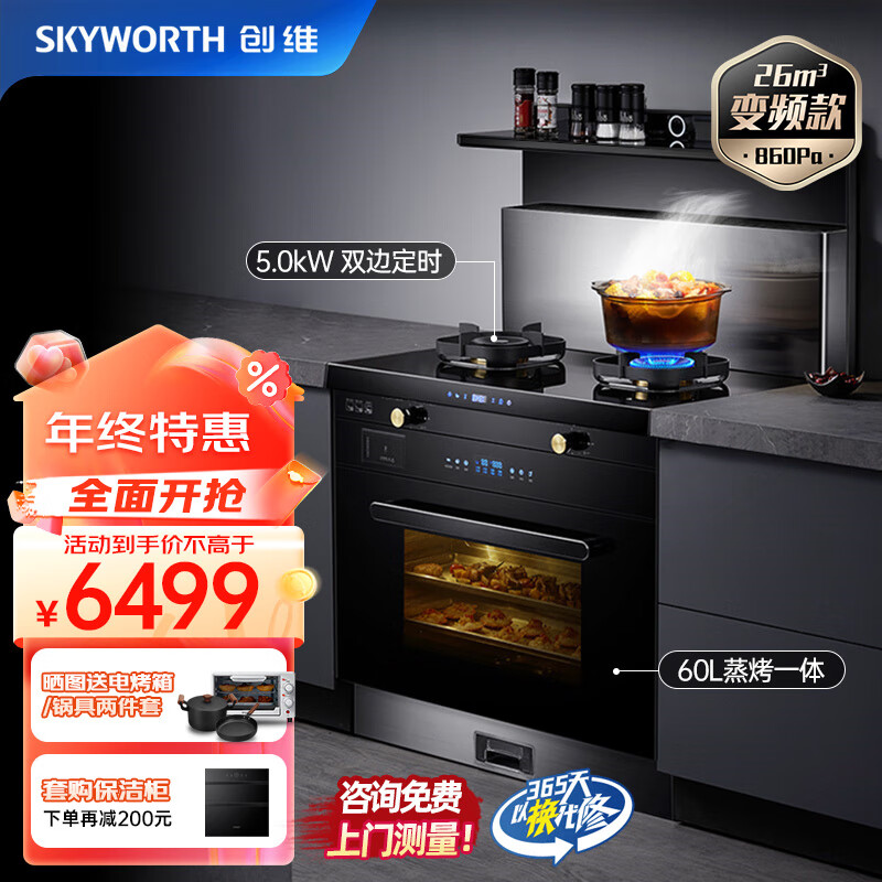 创维(Skyworth)集成灶蒸烤炸一体灶 26立方变频大吸力自清洗油烟机蒸烤消一体机蒸箱烤箱一体J82Z液化气价格:6499.00元!