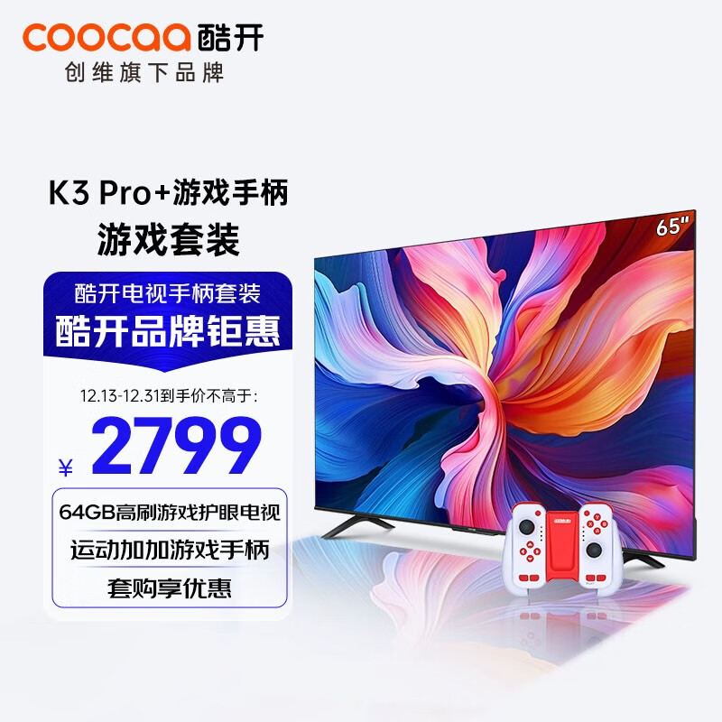 酷开创维 65英寸电视机K3 Pro+运动加加Gemini三合一手柄套装 游戏电视 家庭娱乐 高刷体验畅玩多平台价格:2799.00元!