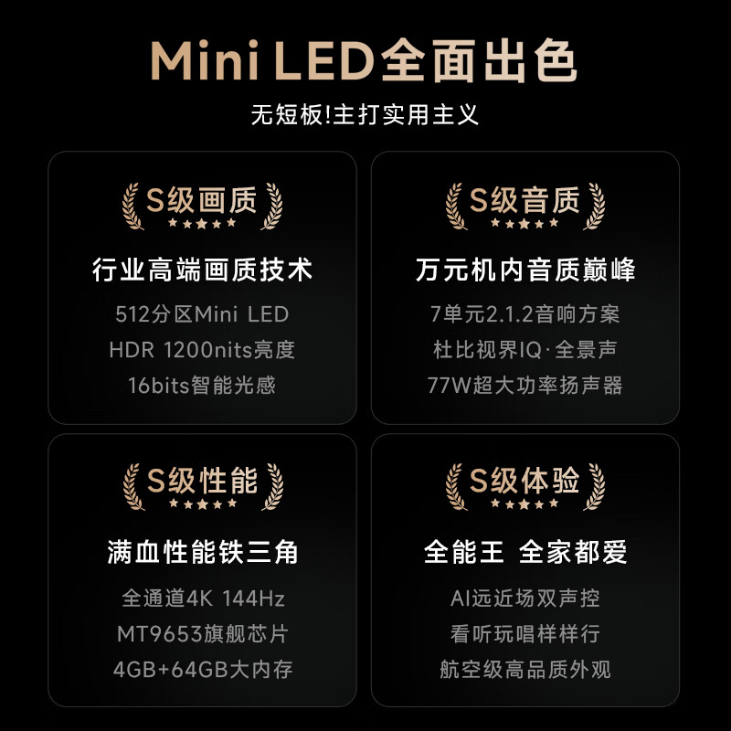 Vidda Z75 海信 75英寸 4+64G 512分区 Mini LED 240Hz 游戏智能液晶电视以旧换新75V7K价格:7999.00元!